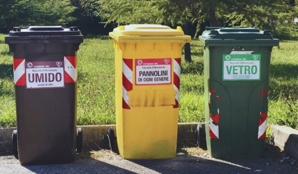 Separazione coerente di più tipi di rifiuti (carta, plastica, organico, alluminio, cartucce, olio)