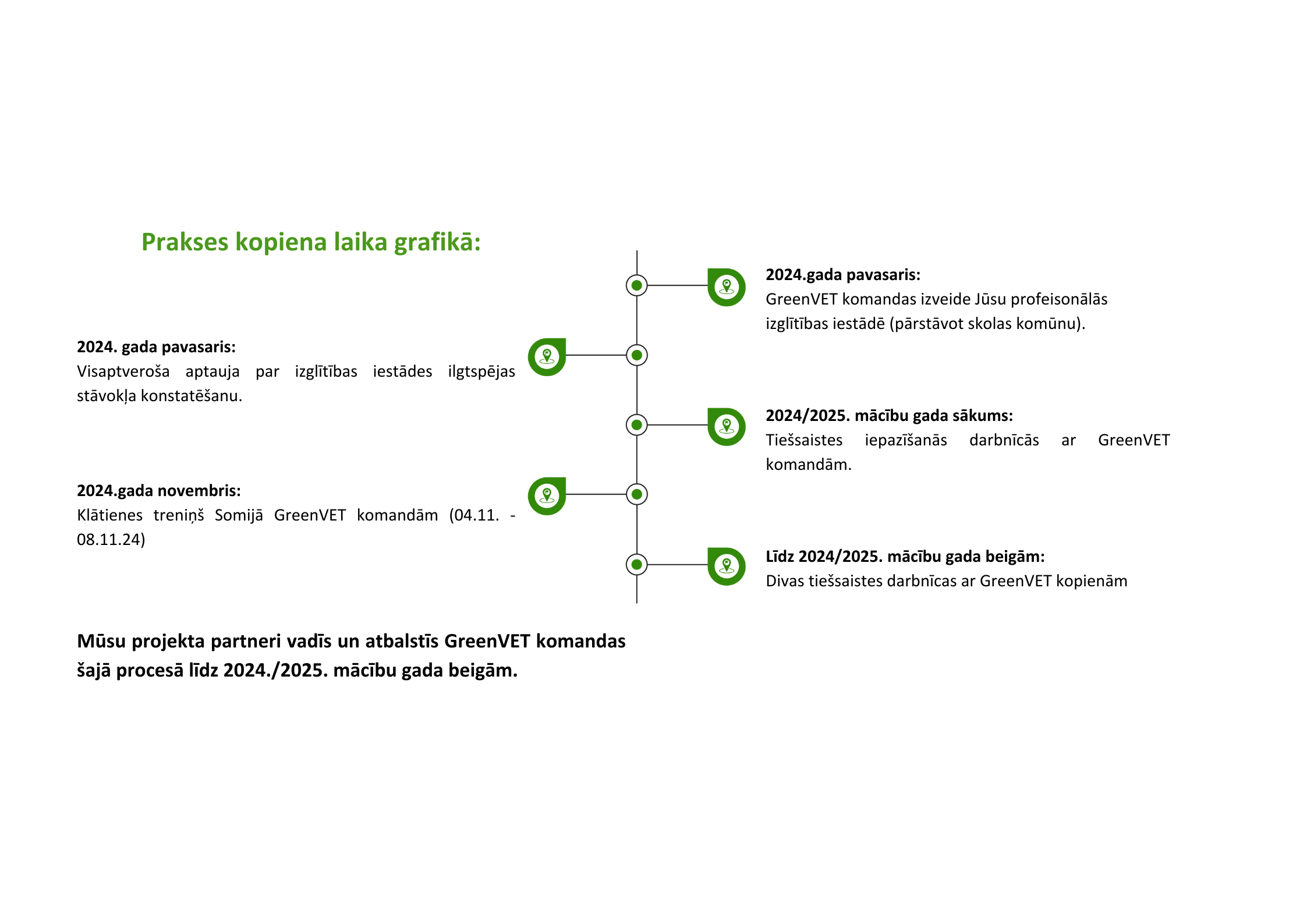 Erasmus+ projekta GreenVET Pathway partnerības mērķis ir atbalstīt profesionālās izglītības iestādes visā Eiropā, lai tām būtu izšķiroša loma ilgtspējības kultūras veidošanā un veicināšanā. Pievēršoties iestādei visaptveroši, iesaistītās profesionālās izglītības iestādes iegūs iespēju izpētīt savu iestāžu potenciālu un to sniegto apmācību zaļās pārejas vajadzībām.
